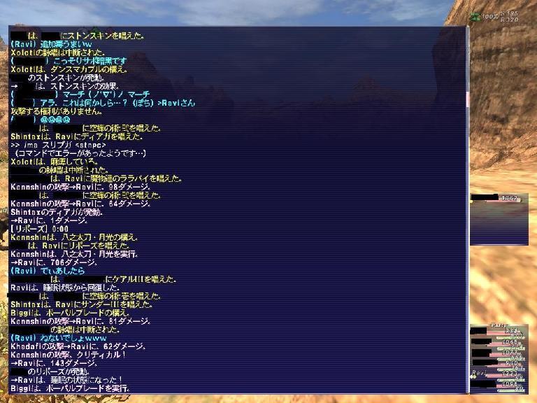 無理な場合は今後は召還etcのペット戦法で魅了を無効化するしかないですねぇ・・・後は/blockaid。これ魅了中でも有効なのかな・・・もし無理だった場合はもうホントどうにかして欲しい。